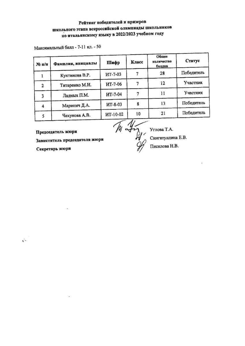 Персональные данные учащихся размещены с письменного согласия родителей (законных представителей)