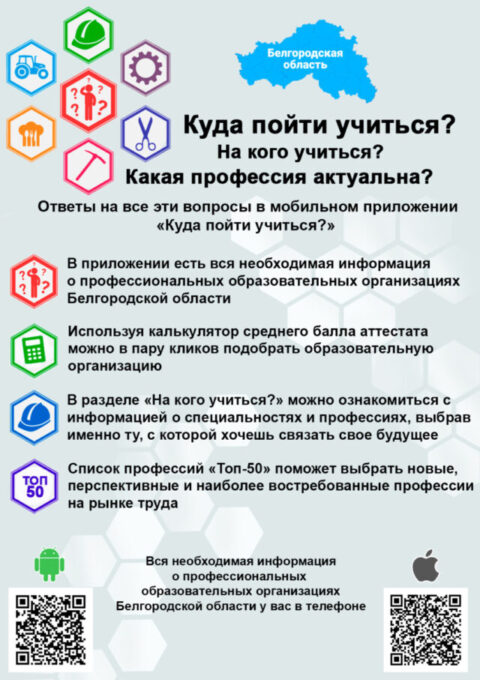 В 2019 году запущено мобильное приложение «Куда пойти учиться?», которое представляет собой краткий справочник для абитуриентов, содержащий общую информацию о профессиональных образовательных организациях Белгородской области.